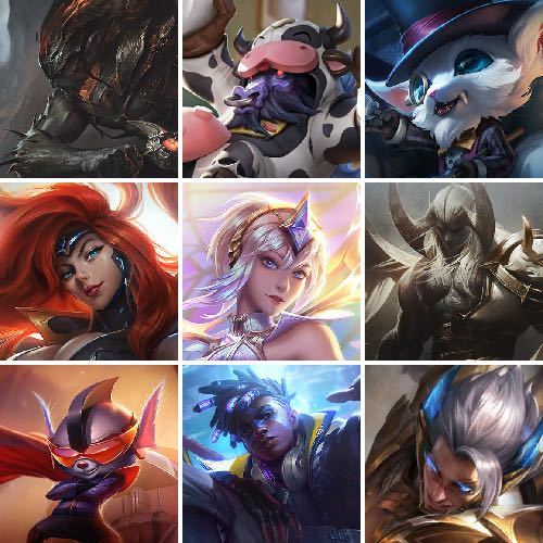 果壳丨艾欧尼亚丨可排位丨灵魂莲华丨幻灵战斗队长丨五杀摇滚乐队丨女帝丨猩红之月丨星之守护者丨大元素使丨