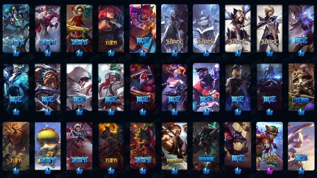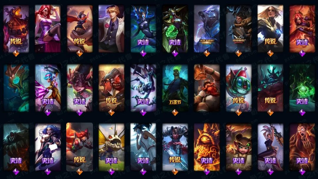 1939皮肤〓可排位妹子号白银〓全英雄〓57神话〓21臻彩〓226炫彩〓殿堂传奇〓至臻霞洛潘森泽丽烈