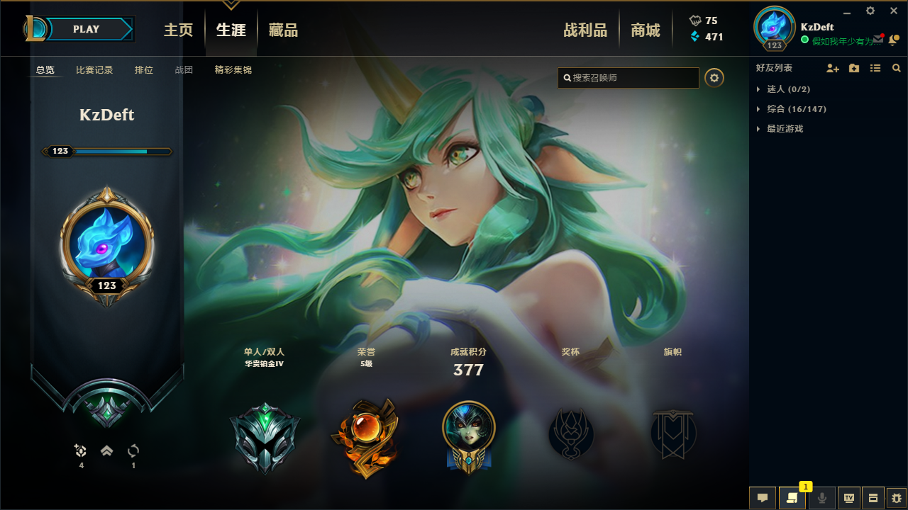 段位:390级 华贵铂金IV级 华贵铂金IV