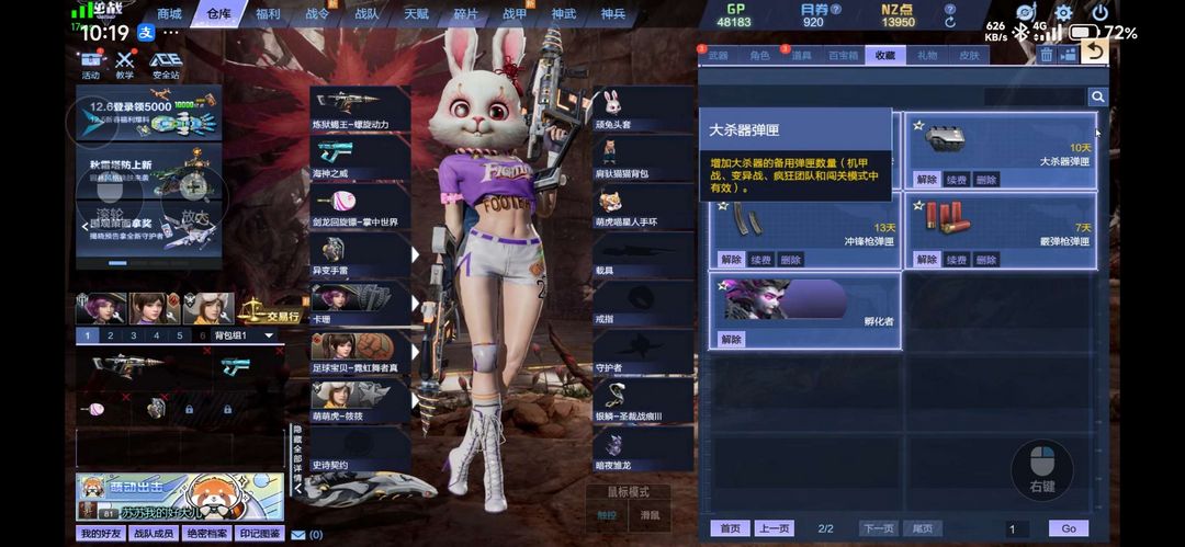 装备描述:炼狱双蝎➕皮肤/爆炎双铳/混沌-重温旧梦/两把海神之威/审判之刃/重装利刃/变异三卡/孵化者/幽灵使者/异变手雷/燃烧瓶/所有弹夹都有 无的话望告知 立马补/安全码解不开直接发我)安全模式薇:(⭐️一 巴 伍 伍 灵 撕 零 起 巴 零 一 ) 乱撤单直接拉黑喽 望理解