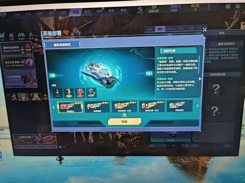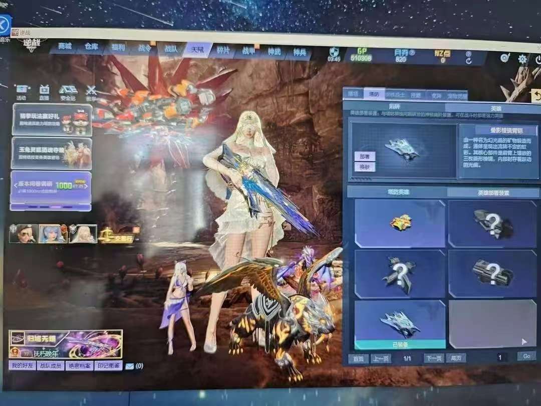 装备描述:新增: 掘金 璃鸢-金翎 焚霄-玄烬 主要道具简介 秘境530 史诗套:天耀套 角色:晶㠊 /大元素使卡珊穆维/纳米使者-丽莎 头盔:蓝色噪点/量子魔盔/龙魂之铠/冰凤甲 戒指:灵蝶之戒/阿斯特利亚之心/霜雪/灵泊 手环:十周年手环/雪之殿堂手环 伴生灵:艾蓓欧泊/地狱犬 宠物:暗夜翼龙/灵龙 战甲 载具:斩影 守护者:天穹守护者/黎明小飞机 英雄陷阱:璃鸢-金翎/焚霄-玄烬/掘金/领主 臂铠:叠影棱镜臂铠 变身英雄:龙姬/希里 其他道具:全星光炮弹夹/三卡/百宝箱/陷阱全能卡
