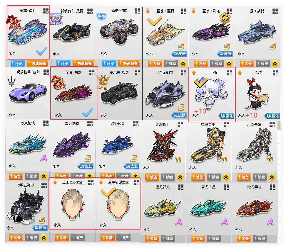 双年限S踏月烛龙=暴风战舰白金剃刀暗影龙骑终极猛兽=冰夷踏浪=金玉良缘星海发=80页男衣柜小蓝仙10