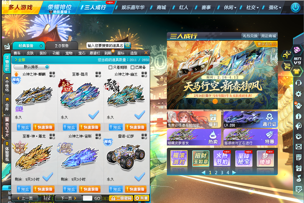 游戏区服:QQ飞车-电信-电信