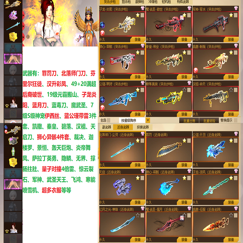 超多稀有武器+罪罚芬里尔狂徒彩凤后裔破世北落师门尘灵等等