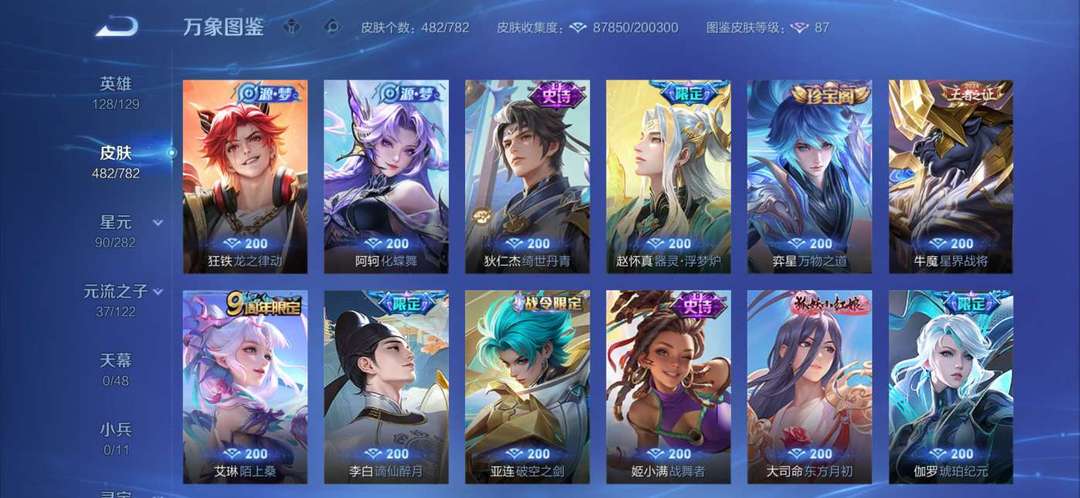 V10...488皮,梅西神奇女侠7典藏一无双,马年皮肤云缨马超
