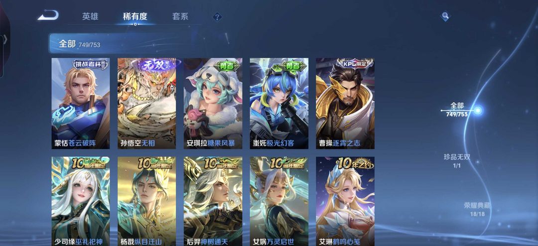 749满皮♥孙悟空无相无双凯神罪诸葛亮无双白泽♥〖貂蝉慕夏♥馥梦繁华〗满珍品满典藏满无双✨小兵皮肤
