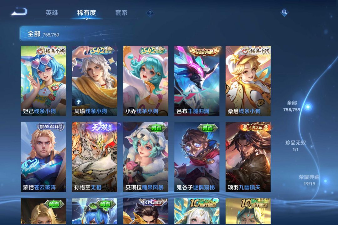 758皮|不禁言女号|只缺①皮肤〖吕布典藏❤猴子无双〗满典藏✨满星元✨满按键✨满无双✨满珍品✨满传说