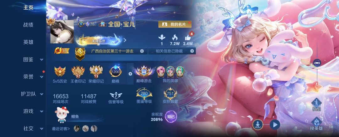 主播精英标巅峰游走大国服历史20国服全软辅瑶大乔朵莉亚/吕布新典藏5省金牌瑶92段游走荣耀V10女号