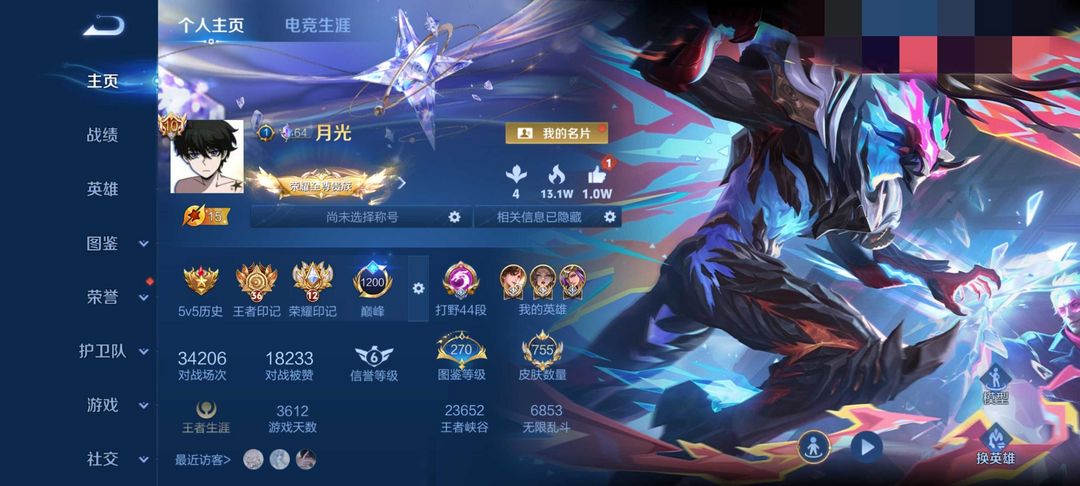 荣耀V10不禁言❤754皮历史三国服李白武则天雅典娜❤孙悟空-无相❤️吕布-千魇归渊❤️满小兵满星元