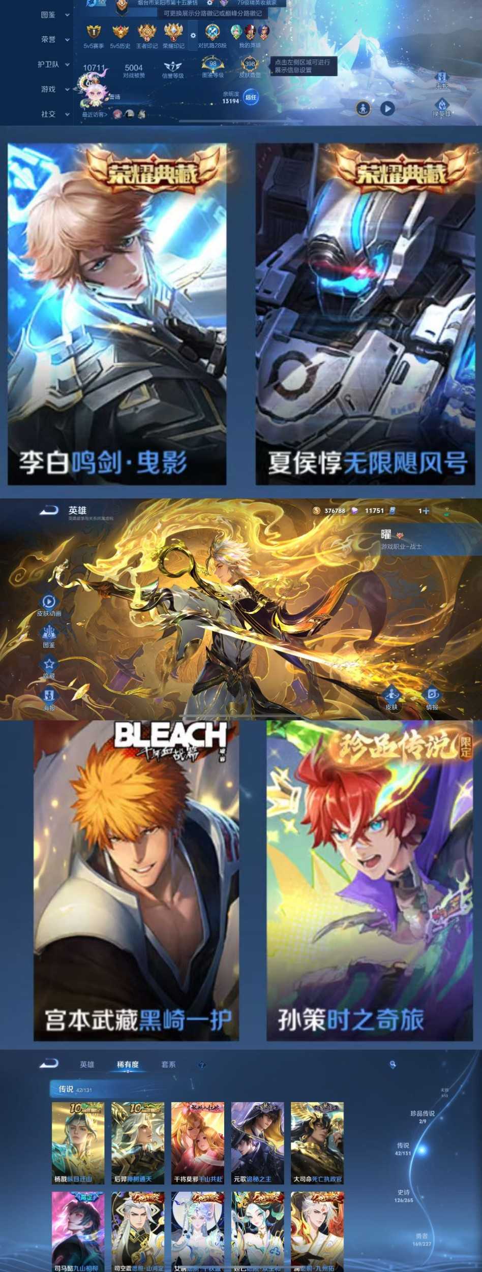 限制: 租号1次及以上 | 撤单率<49%才可租用此帐号装备描述:时间到了还登录白玩或者顶号全部改密拉黑处理永不解除,顶号机器会秒禁玩改密,顶号不仅拉黑还没得玩,赚三两块不容易,请理解谢谢。 ❤❤❤❤❤❤❤❤❤❤❤❤❤❤❤ 请勿开挂,挂机,送头,骂人,撤单后游戏等如有违规永久拉黑永不解除。重置二级密码不要费劲了,号主每天都会上号查看,多行不义必自毙,人在做天在看,多做好事多自律,少做缺德事。 该号英雄127个皮肤398个,典藏2个,无双1个,珍品传说2个,星传说4个,传说42个,史诗126个,祝你游戏愉快~