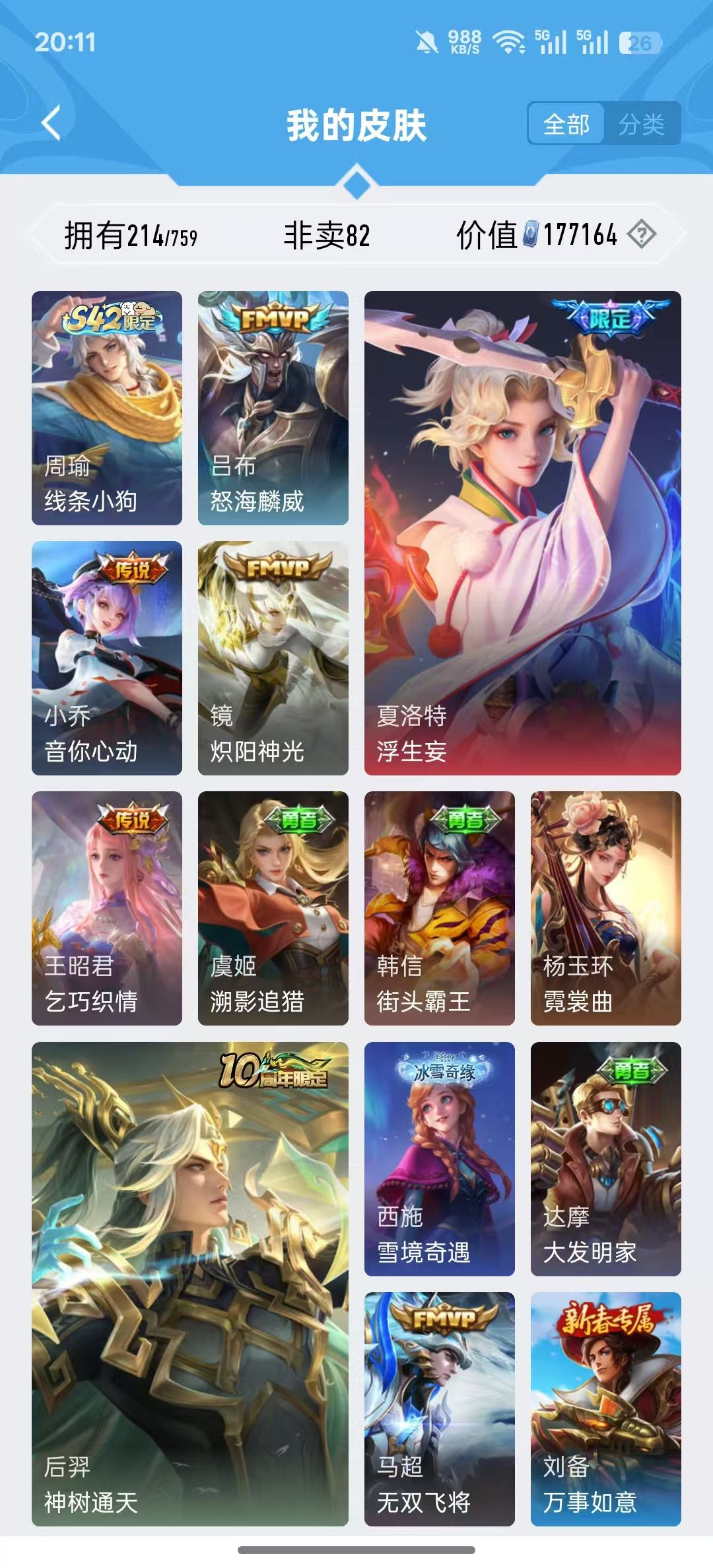 限制: 租号3次及以上 | 撤单率<60%才可租用此帐号装备描述:>>>>>>毁号,涉及毁坏虚拟财产罪及计算机安全罪,请文明游戏素质游戏,让我们共建美好租号平台>>>>>> 本游戏账号: ,基础段位:尊贵铂金II,英雄多,皮肤多。典藏皮肤1个,感受典藏皮肤带来的优质体验快感, 私人所属英雄皮肤有:貂蝉 幻阙歌后羿 黄金射手座||李信 一念神魔||貂蝉 仲夏夜之梦||曜 李逍遥||孙尚香 异界灵契||虞姬 云霓雀翎||李白 凤求凰马可波罗 山海·玄木吟||后羿 圣弓游侠||墨子 神迹守卫||项羽 海滩派对||吕布 御风骁将||庄周 高山流水||伽罗 天狼溯光者||孙悟空 孙行者||韩信 傲雪梅枪||东皇太一 逐梦之光||狄仁杰 魔术师||狄仁杰 阴阳师||赵云 皇家上将||米莱狄 胡桃异想国||米莱狄 御霄||刘禅 唤灵魔甲||芈月 幻夜卜梦||芈月 白晶晶||亚瑟 潮玩骑士王||明世隐 疑决卦||上官婉儿 梁祝||花木兰 默契交锋||蒙犽 狂想玩偶喵||鲁班大师 乓乓大师||达摩 沙漠行僧||鬼谷子 五谷丰年||雅典娜 单词大作战||元歌 云间偶戏||黄忠 火炮绅士||裴擒虎 李小龙||嫦娥 暖冬·兔眠||嫦娥 拒霜思||桑启 海盐诗旅||暃 星界游