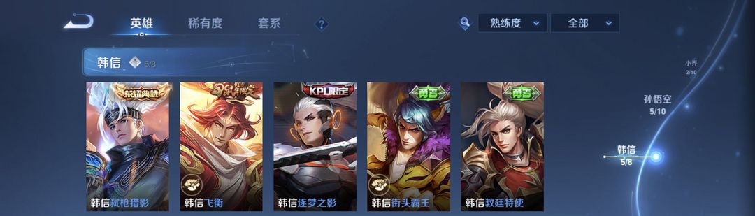 铠和李白的无双限定皮韩信荣耀典藏皮马超琥珀纪元霜北刀李逍遥悟空零号赤焰至尊宝李信一念成魔杀手不太