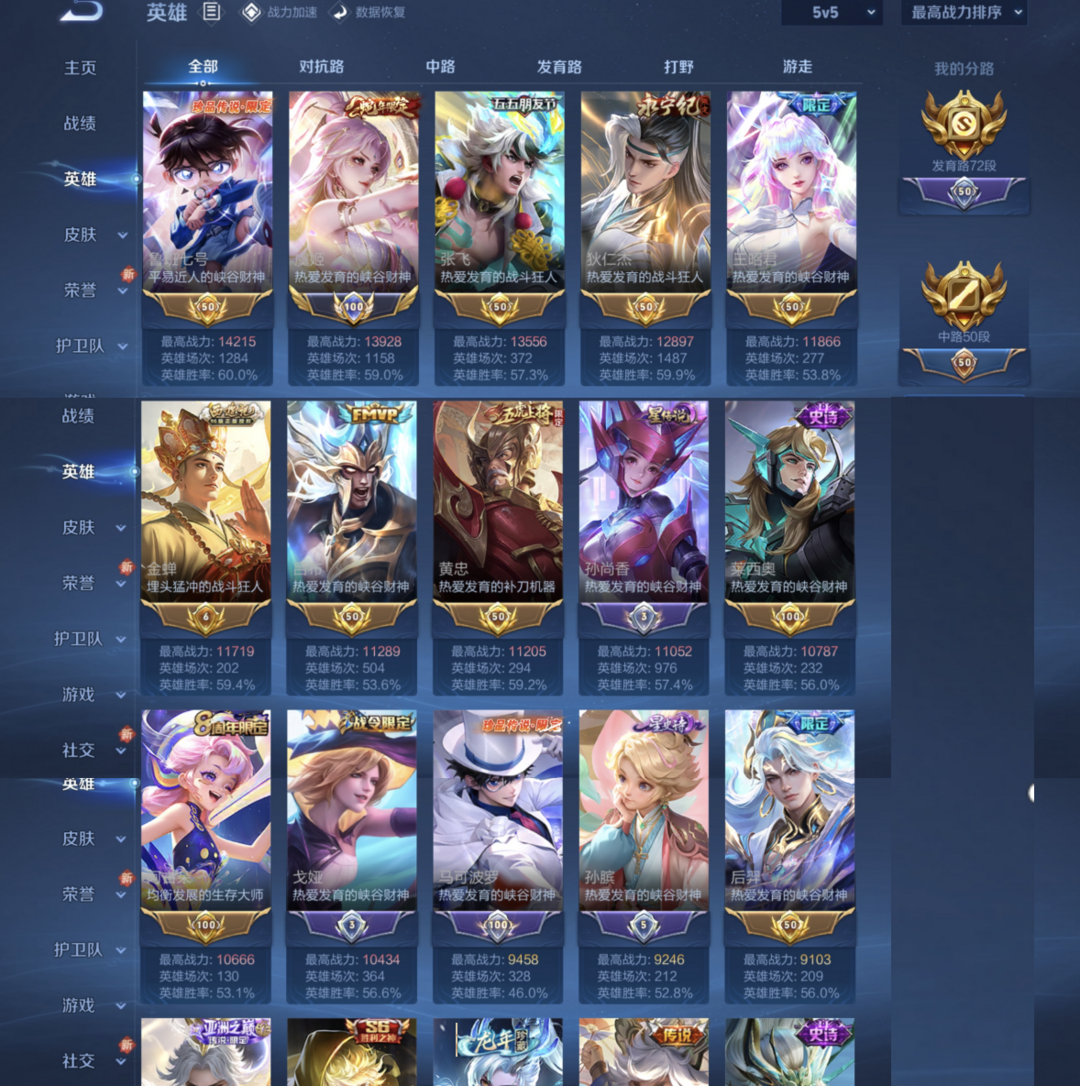 【发育路72段】云诺千山⚡蛇年限定⚡满珍品⚡国服虞姬⚡多万战⚡离恨烟⚡怪盗基德⚡器灵螭龙剑⚡柯南天幕