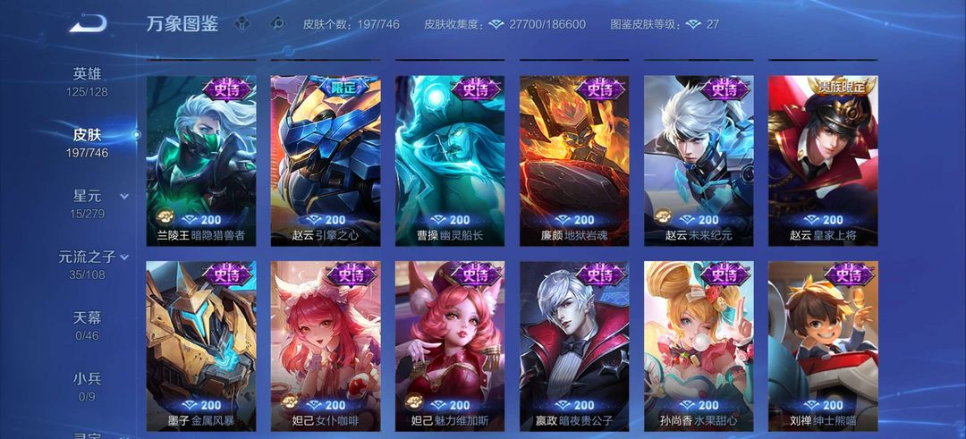宫本黑琦 孙策时之奇旅 蛇年限定澜皮肤。龙年限定孙尚香 世冠赵云皮