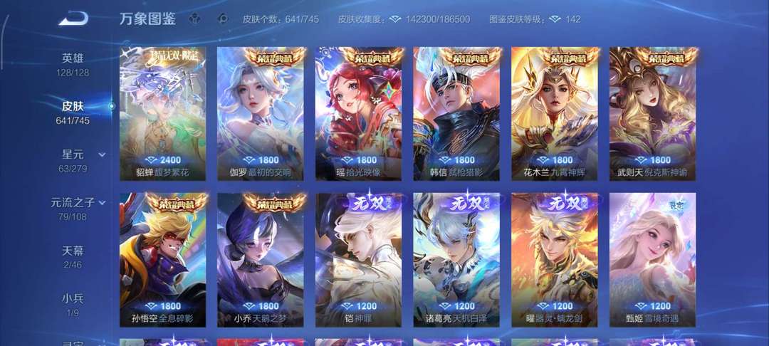 V11包天,撤单拉黑皮肤640+皮肤7典藏11无双9珍品凯诸葛无双已秒,猴子狄仁杰后羿马克全皮等