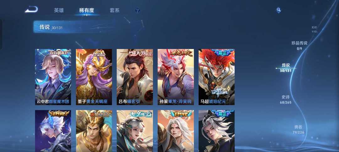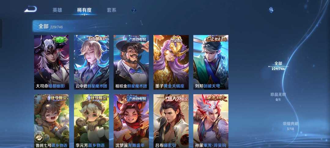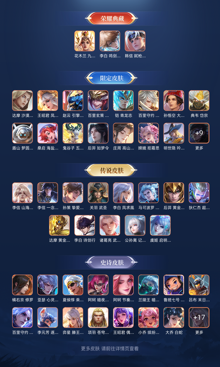 装备描述:【稀有英雄】11 _敖隐 _金蝉 _艾琳 _夏洛特 _不知火舞 _武则天 _嬴政 _娜可露露 【内测皮肤】2 高渐离_玩趣恶龙 艾琳_女武神 【荣耀皮肤】11 铠_银白咏叹调 李白_鸣剑曳影 武则天_倪克斯神谕 武则天 程咬金_活力突击 夏侯惇_无限飓风号 孙悟空_全息碎影 鲁班七号_星空梦想 芈月_大秦宣太后 孙尚香_杀手不太冷 小乔_天鹅之梦 【珍品无双】0 【无双皮肤】0 【珍品传说】2 张飞_兔狲蓬尾 瑶_大耳狗之梦 【星元皮肤】0 【传说皮肤】31 曜_李逍遥 裴擒虎_寅虎赤拳 公孙离_祈雪灵祝 诸葛亮_时雨天司 伽罗_太华 百里玄策_白虎志 杨戬_永曜之星 兰陵王_默契交锋 诸葛亮_武陵仙君 艾琳_觅芳踪 虞姬_启明星使 王昭君_乞巧织情 小乔_音你心动 周瑜_音你心动 刘备_时之恋人 梦奇_胖达荣荣 貂蝉_仲夏夜之梦 孙悟空_地狱火 武则天_海洋之心 狄仁杰_超时空战士 吕布_天魔缭乱 西施_游龙清影 镜_炽阳神光 曜_云鹰飞将 貂蝉_猫影幻舞 干将莫邪_久胜战神 李信_一念神魔 虞姬_云霓雀翎 张良_黄金白羊座 后羿_
