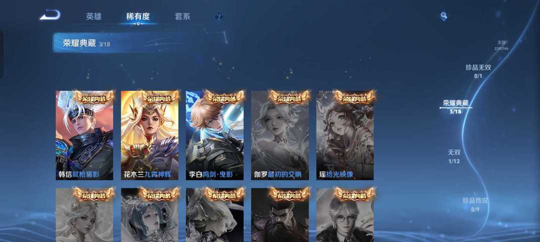 2V9荣耀典藏3弑枪措影九霄神辉鸣剑曳影珍品传说2 传说皮肤31 史诗皮肤109