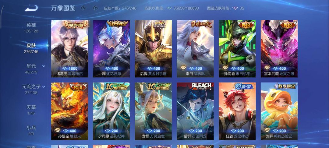 诸葛荣耀典藏排位70多星。超多皮肤可以体验。