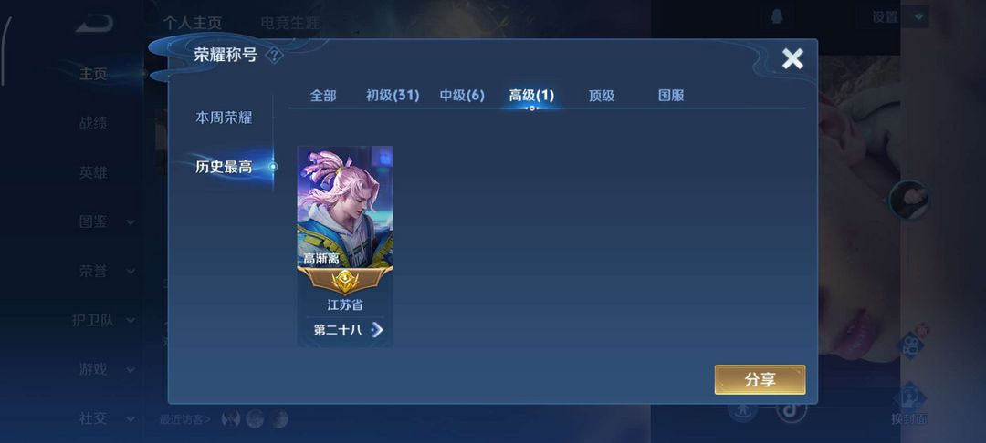 装备描述:在榜市标高渐离。历史多标可排位可巅峰,毁号拉黑。