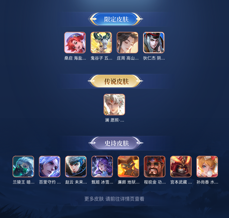 装备描述:❤️澜愿照·九州拓❤️韩信街霸❤️后羿石田雨龙❤️狂铁龙之律动❤️云缨幻光神枪❤️赵怀真灵器浮梦炉❤️阿古朵周年限定❤️姬小满珍宝阁❤️桑启周年限定❤️孙尚香守约马可鬼谷子东皇宫本典韦干将瑶小乔大乔妲己安琪拉孙策鲁班兰陵王凯吕布张飞