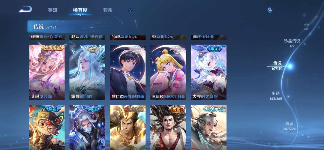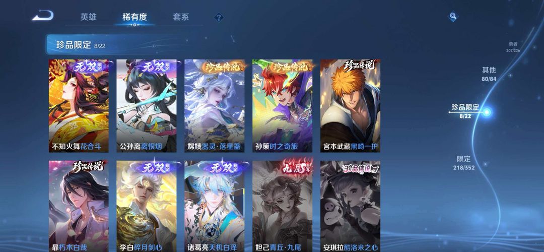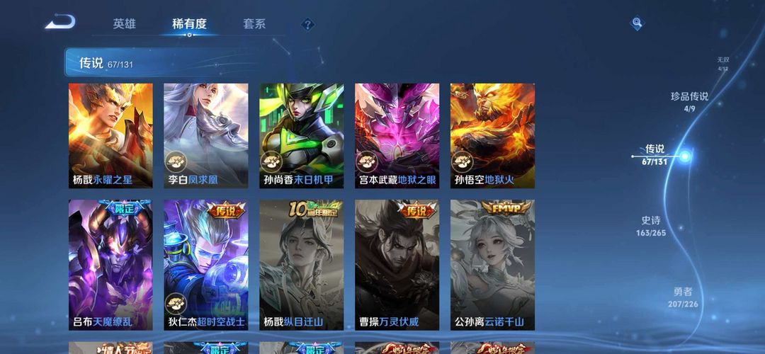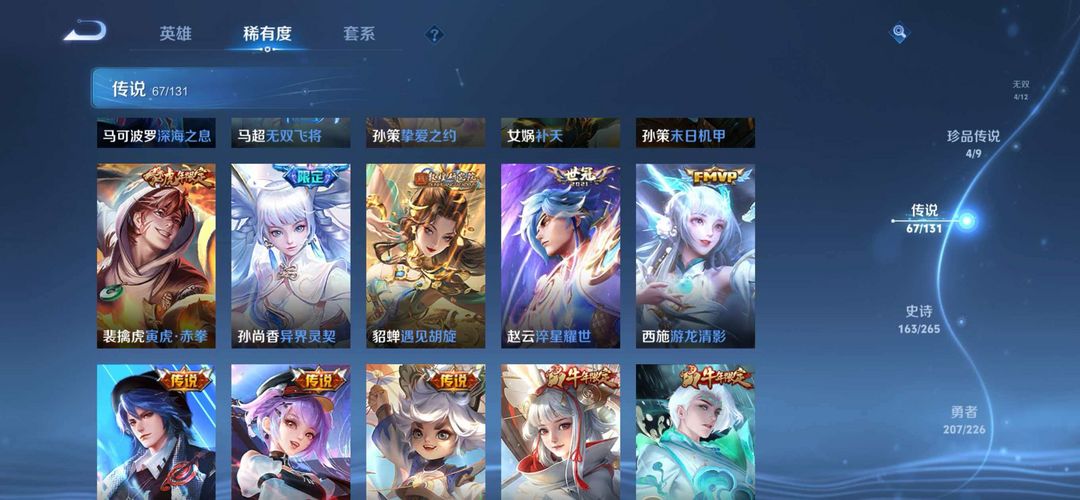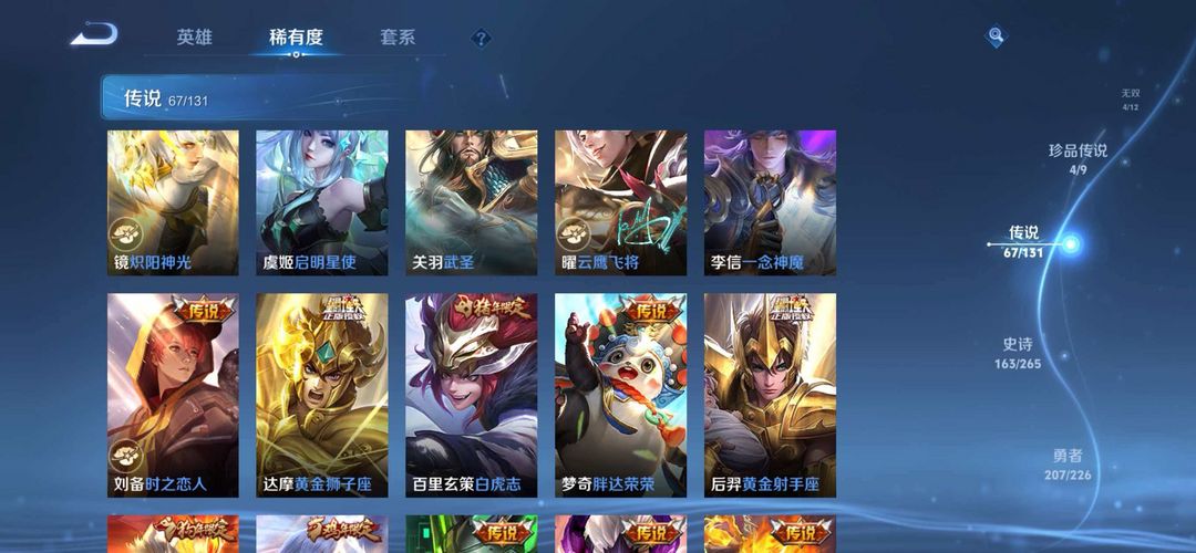 装备描述:英雄:宫本武藏(宫本武藏 黑崎一护,宫本武藏 惊梅引,宫本武藏 未来纪元,宫本武藏 鬼剑武藏,宫本武藏 万象初新,宫本武藏 霸王丸,宫本武藏 地狱之眼);李元芳(李元芳 银河之约,李元芳 蔬乡物语,李元芳 飞鸢探春,李元芳 妄想特派,李元芳 匿光侦查者,李元芳 云中旅人,李元芳 特种部队,李元芳 逐浪之夏,李元芳 黑猫爱糖果,区标);蒙恬(蒙恬 荣光圣徽,蒙恬 蔚蓝守将,蒙恬 秩序猎龙将,区标);诸葛亮(诸葛亮 天机白泽,诸葛亮 星域神启,诸葛亮 掌控之力,诸葛亮 时雨天司,诸葛亮 黄金分割率,诸葛亮 星航指挥官);大司命(大司命 死亡执政官,大司命 东方月初,大司命 暗都幽影,区标);澜(澜 逐花归海,澜 赏金猎手,澜 孤猎);裴擒虎(裴擒虎 祥瑞亨通,裴擒虎 擒涛扼浪,裴擒虎 寅虎·赤拳,裴擒虎 李小龙,裴擒虎 街头旋风);李白(李白 谪仙醉月,李白 碎月剑心,李白 诗剑行,李白 鸣剑·曳影,李白 敏锐之力,李白 范海辛,李白 千年之狐,李白 凤求凰);赵怀真(赵怀真 器灵·浮梦炉,赵怀真 鹤归松栖,赵怀真 太极少年);杨戬(杨戬 潮玩骑兵,杨戬 破阵·退雄兵,杨戬 天秀·启明,杨