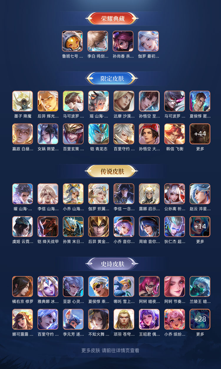 贵10/四典藏/4无双/7珍品/61传说/曜无双/甄姬瑶小乔无双/瑶大耳狗/安琪拉库洛米/黑崎白哉