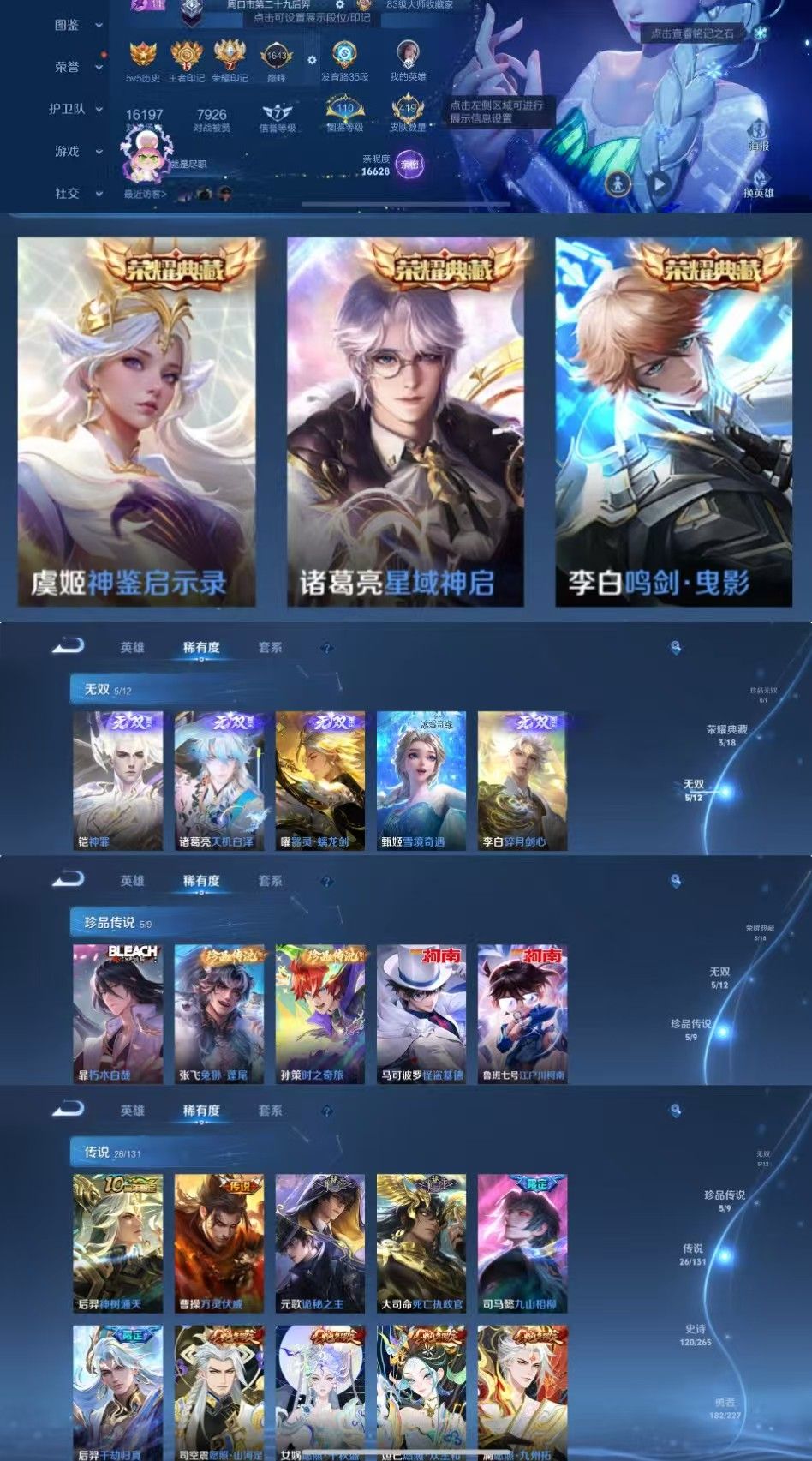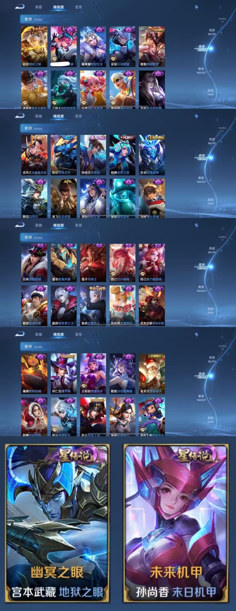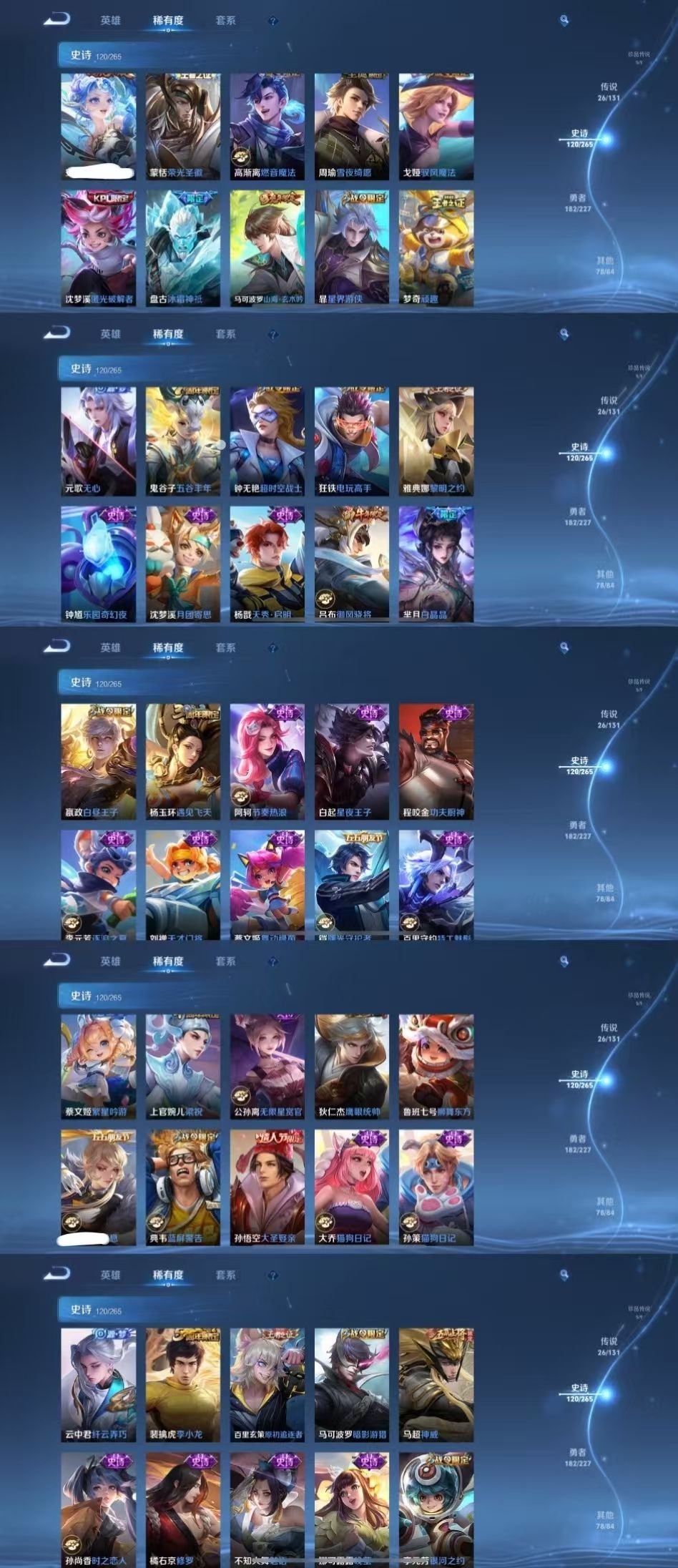 限制: 租号2次及以上 | 撤单率<49%才可租用此帐号装备描述:时间到了还登录白玩或者顶号全部改密拉黑处理永不解除,顶号机器会秒禁玩改密,顶号不仅拉黑还没得玩,赚三两块不容易,请理解谢谢。 ❤❤❤❤❤❤❤❤❤❤❤❤❤❤❤❤❤❤❤ 请勿开挂,挂机,送头,骂人,撤单后游戏等如有违规永久拉黑永不解除。 重置二级密码不要费劲了,号主每天都会上号查看,多行不义必自毙,人在做天在看,多做好事多自律,少做缺德事。 该号英雄127个皮肤419个,典藏3个,无双5个,珍品传说5个,星传说2个,传说26个,史诗120个,祝您游戏愉快~