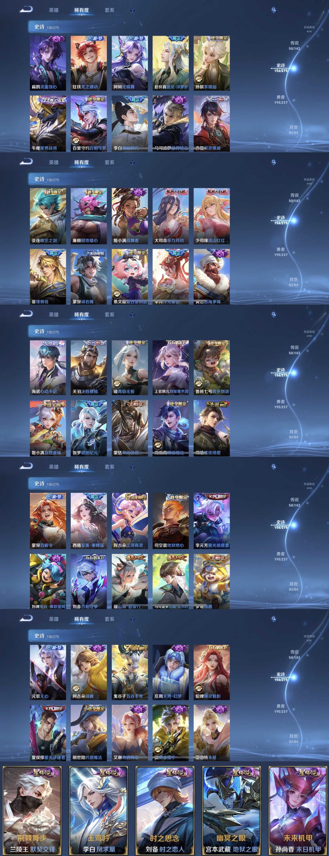 限制: 租号2次及以上 | 撤单率<49%才可租用此帐号装备描述:到时间不下拉黑处理永不解除,顶号机器会秒禁玩改密,顶号不仅拉黑还没得玩,赚三两块不容易,请理解谢谢。 ❤❤❤❤❤❤❤❤❤❤❤❤❤❤❤❤❤❤ 请勿开挂,挂机,送头,骂人,撤单后游戏等如有违规永久拉黑永不解除。 重置二级密码不要费劲了,号主每天都会上号查看,多行不义必自毙,人在做天在看,多做好事多自律,少做缺德事。 该号英雄129个皮肤492个,典藏2个,无双3个,珍品传说4个,星传说5个,传说50个,史诗156个,祝你游戏愉快~