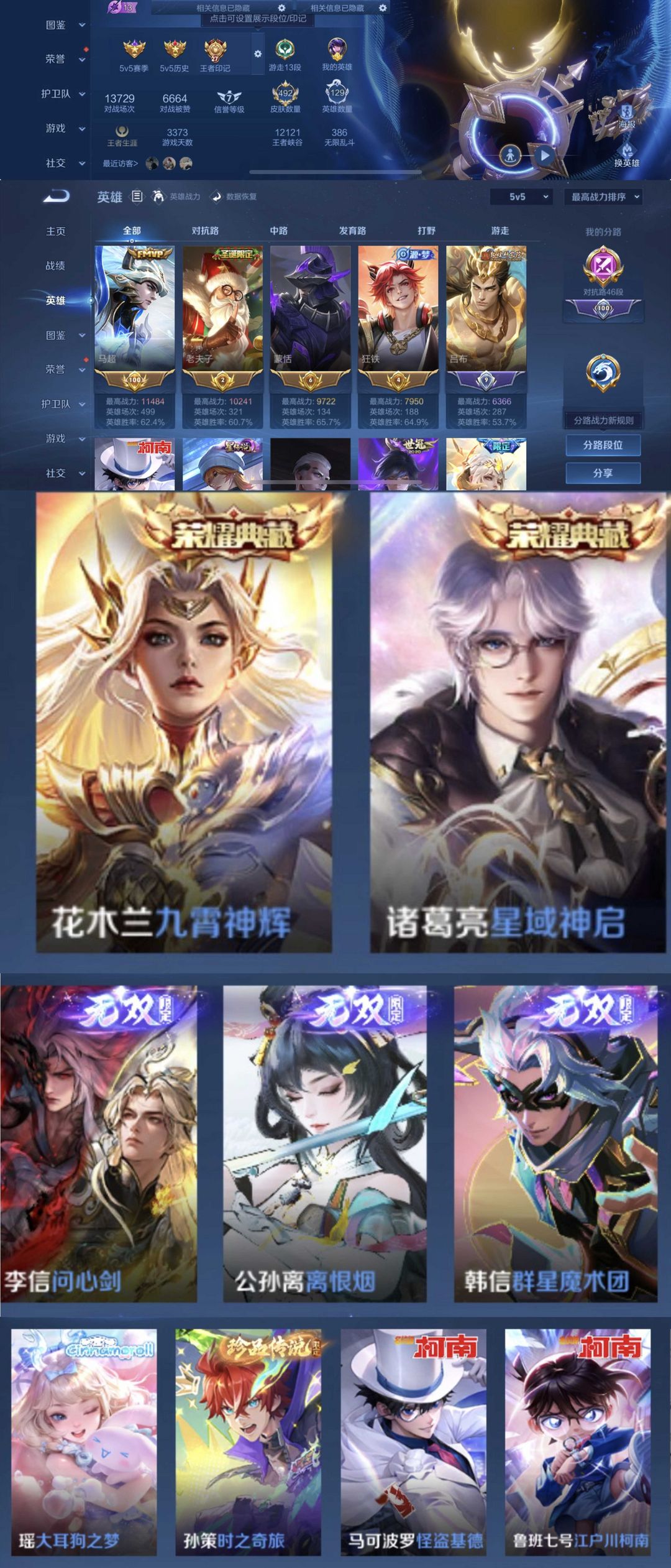 3无双4珍品50传说✨万战马超万战老夫子✨问心剑逐星野✨全十周年大耳狗✨云诺千山续相思✨九州拓全柯南