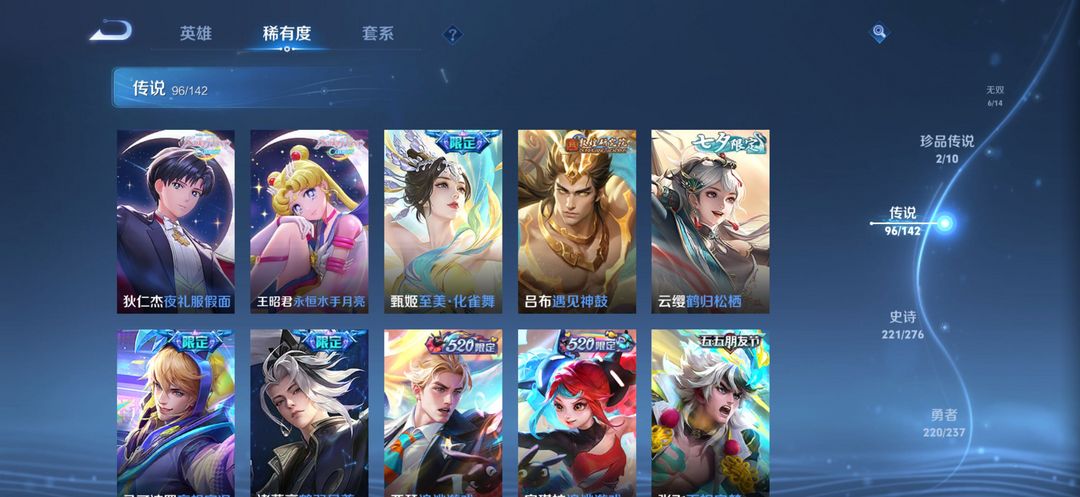 636皮7典藏6无双2珍品传说96传说221史诗,可排位