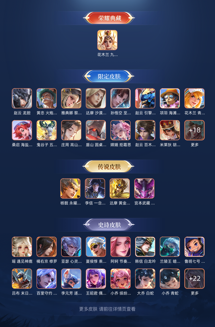 木兰九霄 杨戬刘备全皮 打野 对抗 热门皮肤基本都有