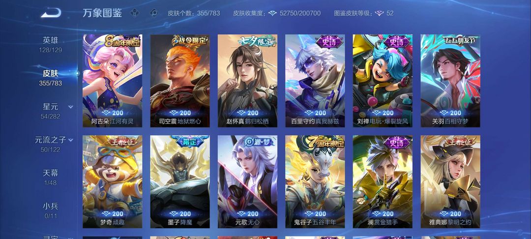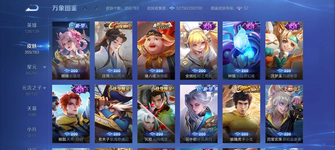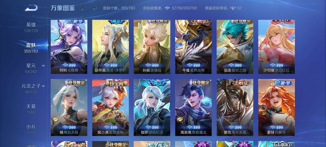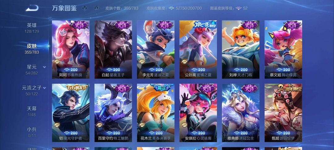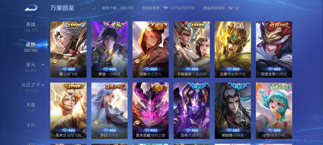 限制: 撤单率<20%才可租用此帐号装备描述:对抗路账号,355个皮肤,英雄除武则天全有,各种各样的皮肤都有,传说史诗无双限定,李信 元歌 蒙恬等等对抗路全皮,2典藏1无双19传说,别的位置也都有皮肤,基本所有英雄全都有皮肤 毁号行为涉及毁坏虚拟财产罪及计算机安全罪,请文明游戏素质游戏,让我们共建美好租号平台!