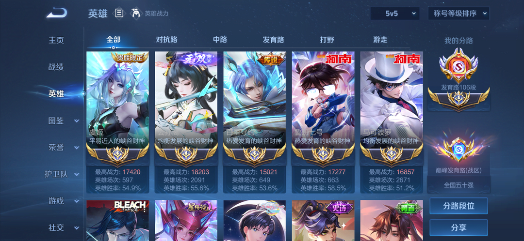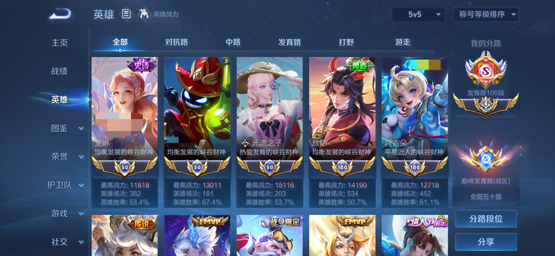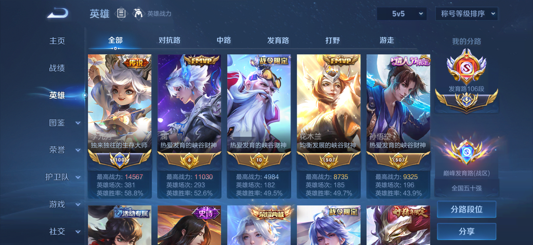 禁巅峰✨106段发育历史大国分路✨历史5个大国服-马可公孙离守约虞姬鲁班