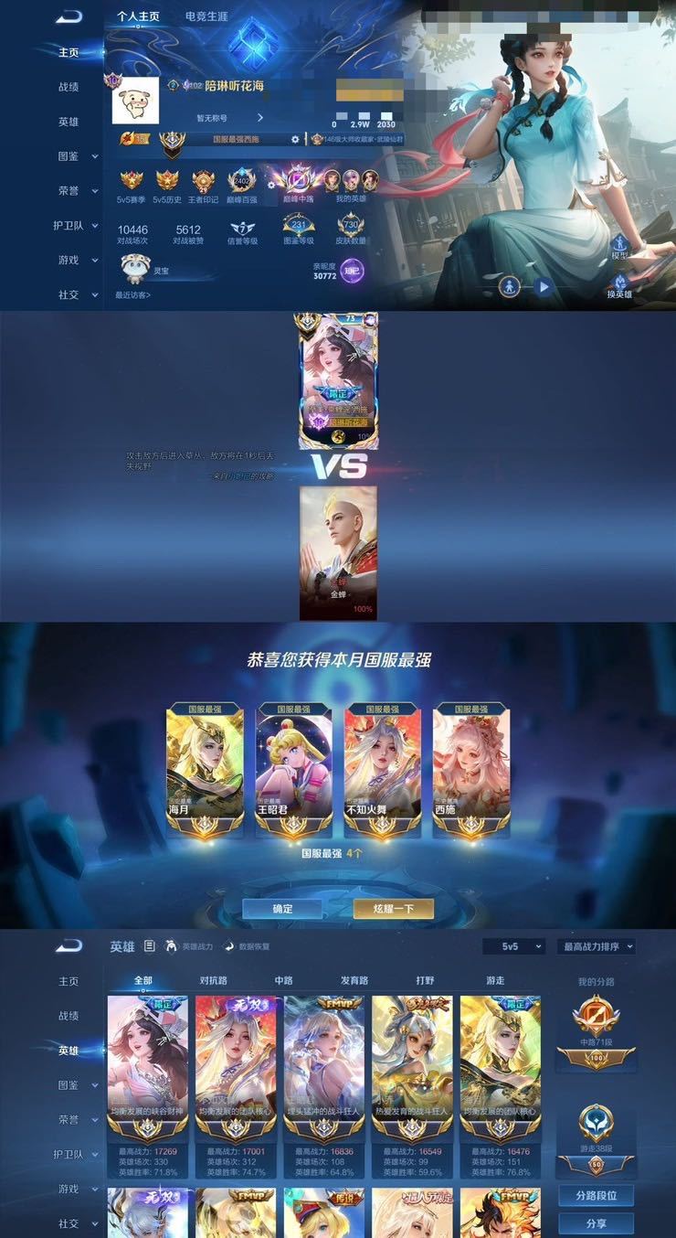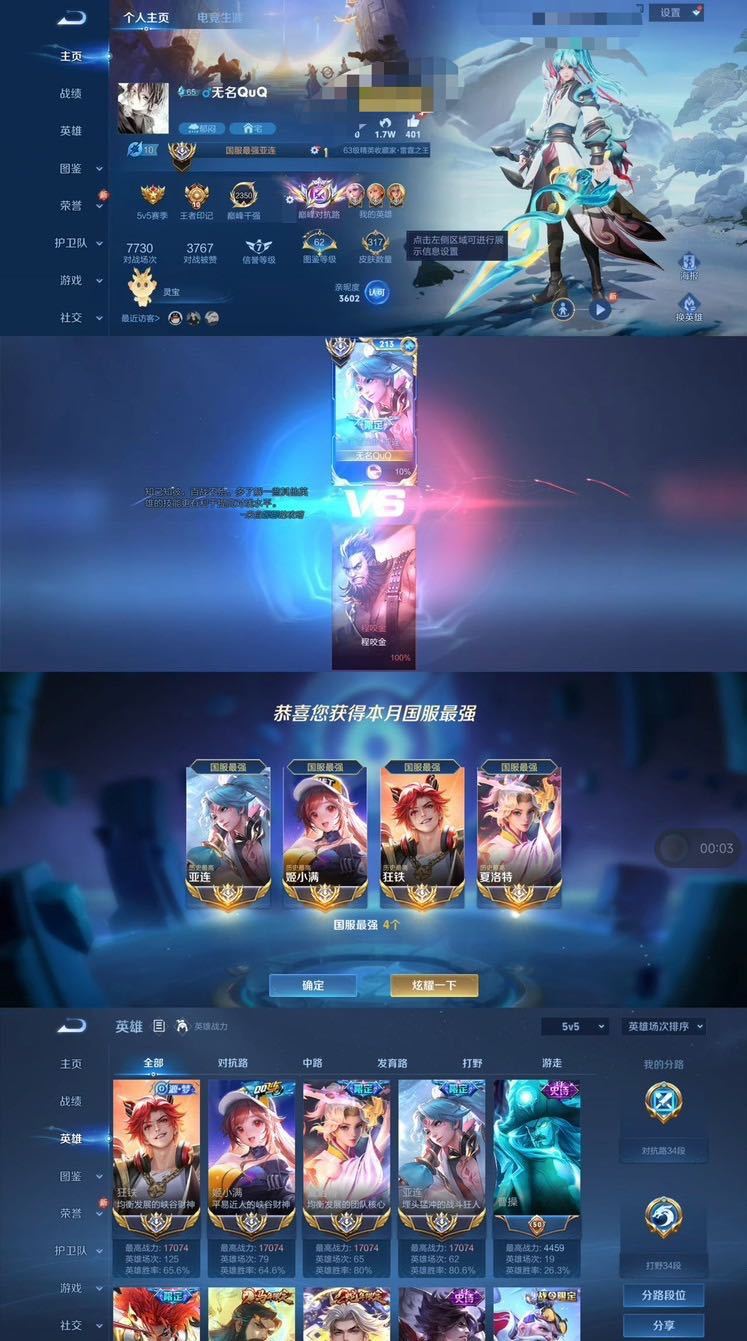 上号➕tuosu5三月在榜国服镜澜裴擒虎⚡️巅峰前十国服猴子香香阿离马可⚡️老虎马超木兰120段