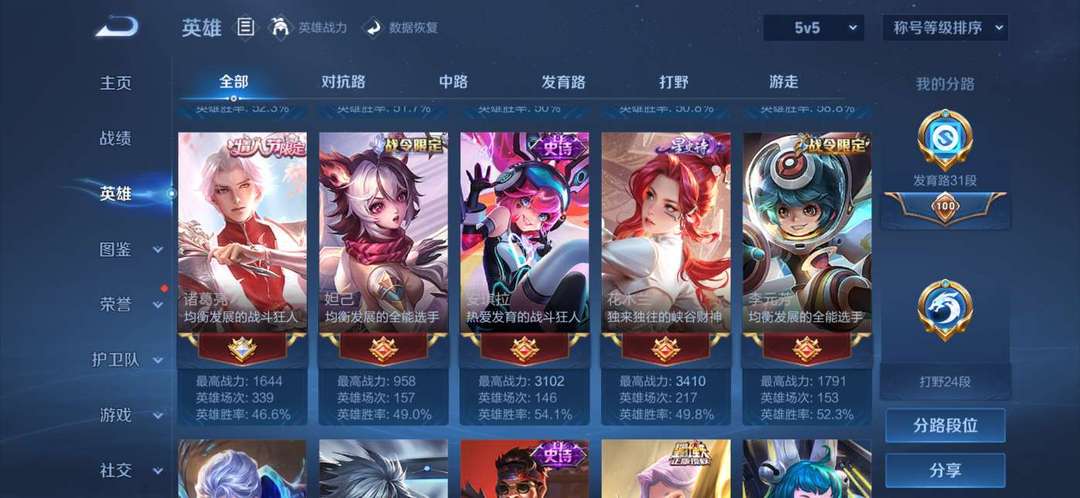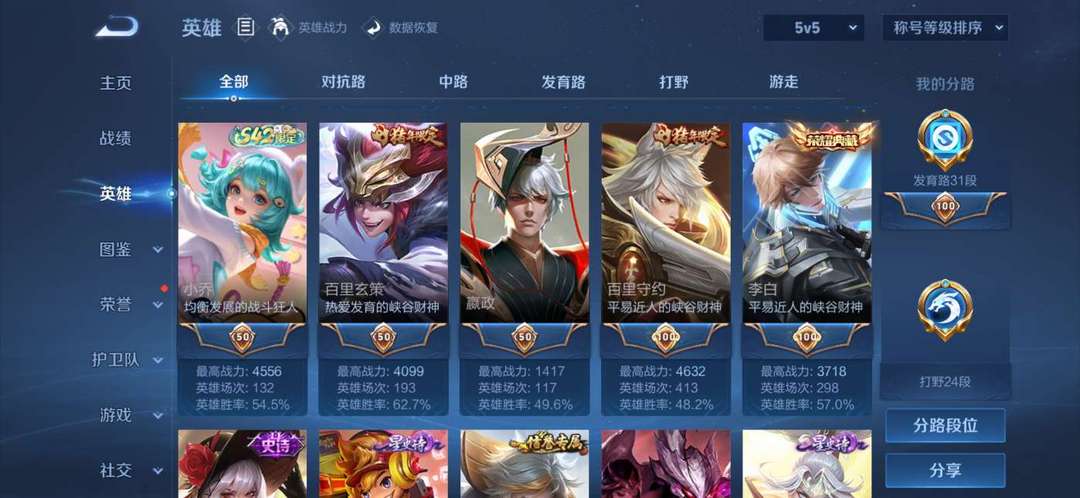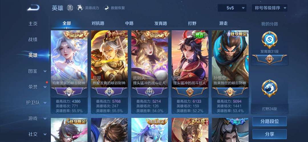 贵族十 空白名 6个典藏皮肤 415个皮肤