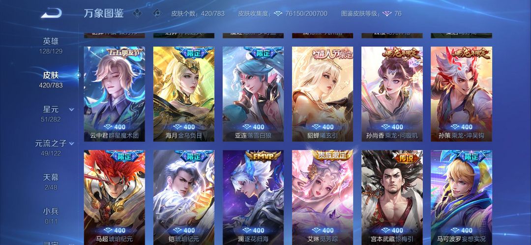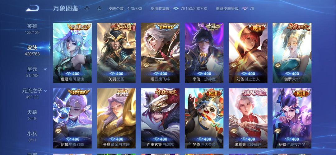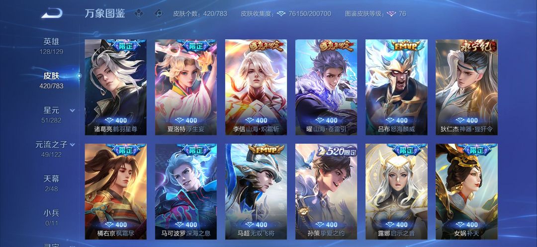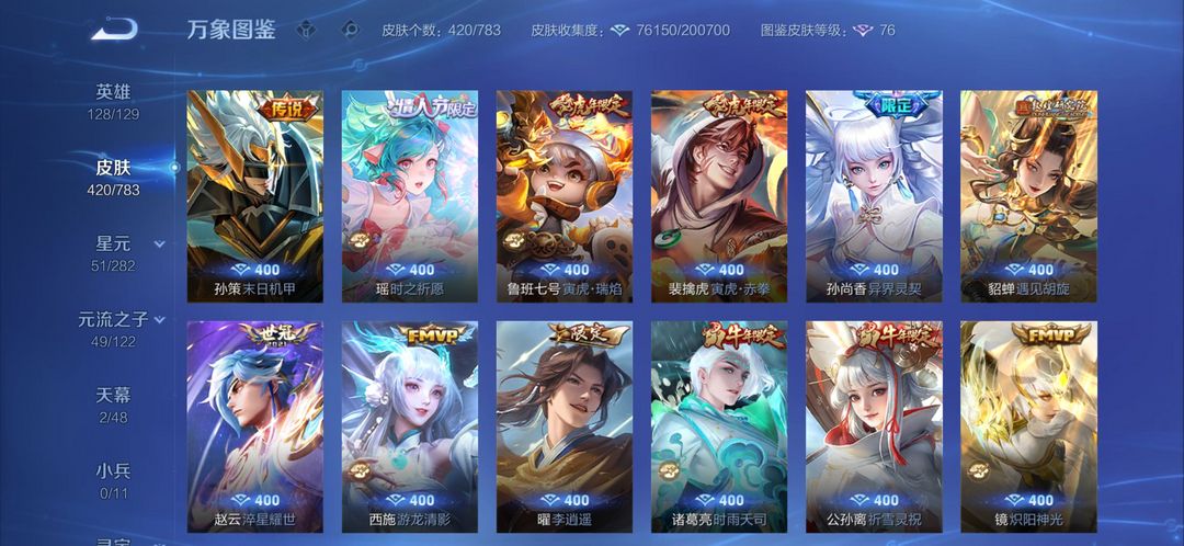 【V10 410皮】貂蝉诸葛亮典藏韩信无双公孙离离恨歌刚上王者
