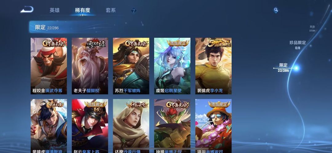 ..v8 120英雄126皮肤2典藏武则天海洋之心全息碎影电玩小子超时空战士胖达荣荣黄金射手座地狱火