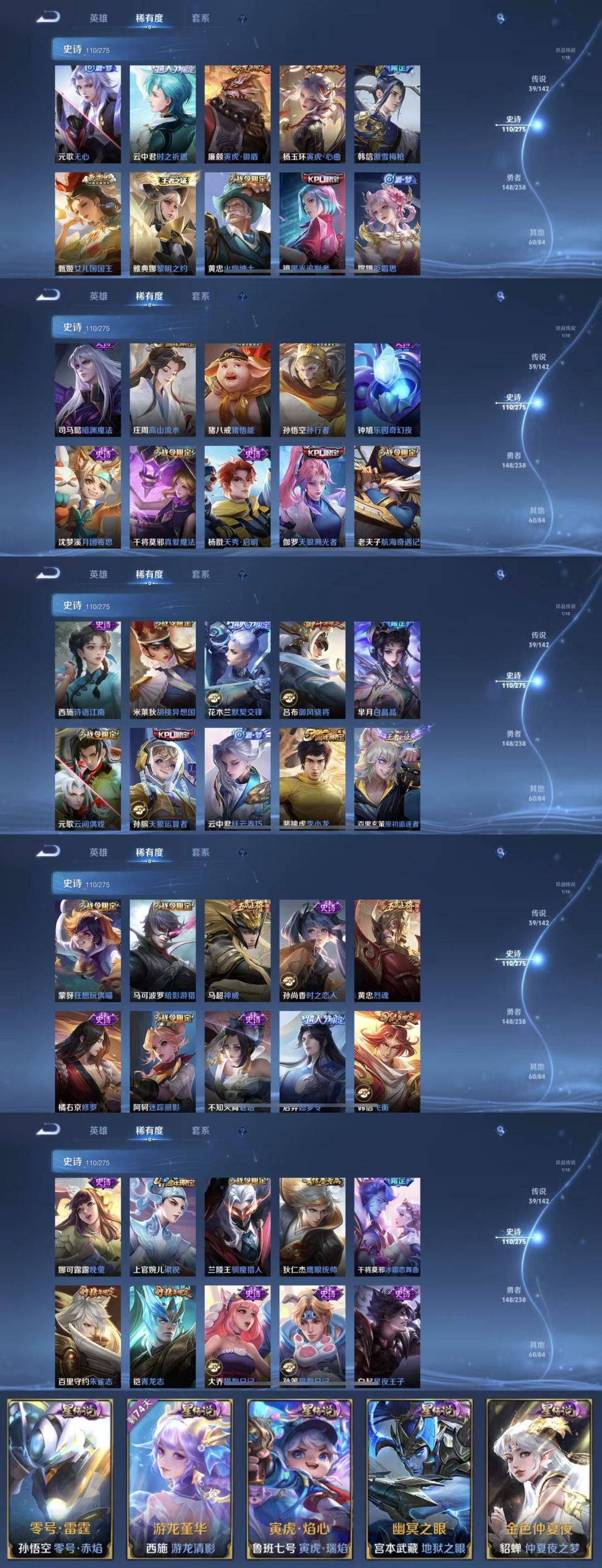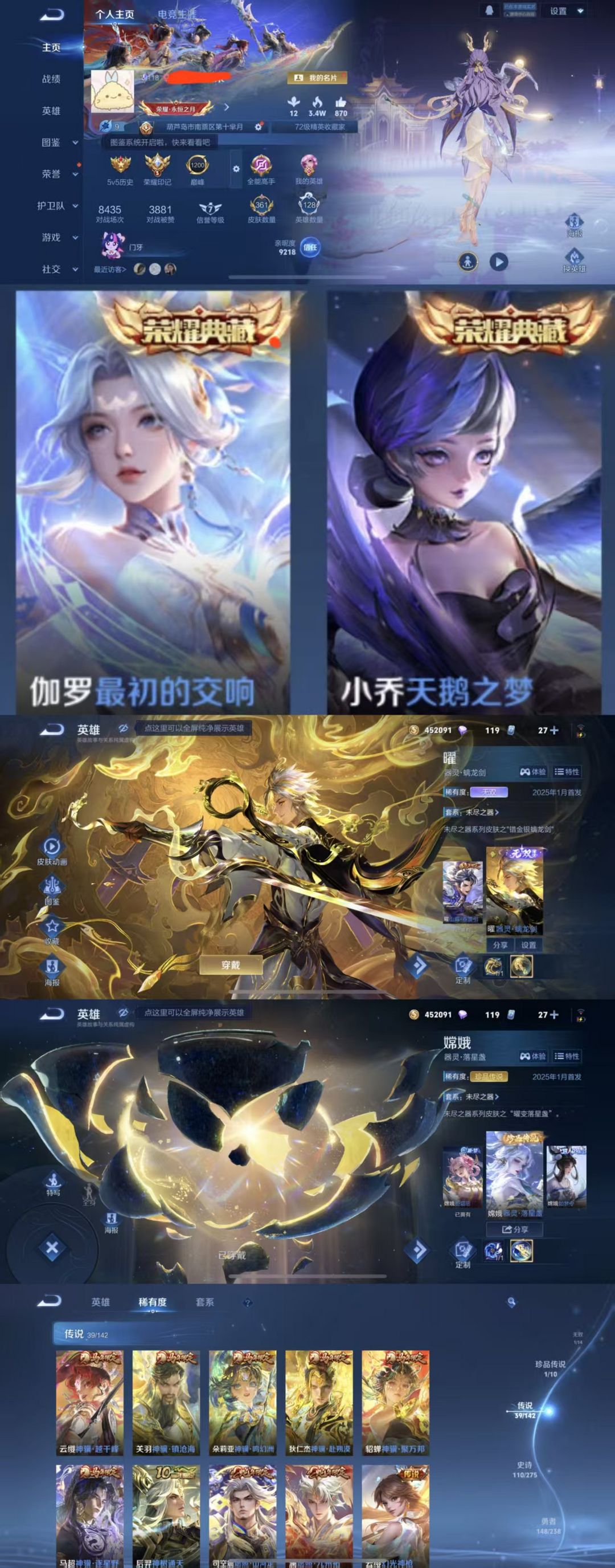 限制: 撤单率<49%才可租用此帐号装备描述:该号英雄128个皮肤361个,典藏2个,无双1个,珍品传说1个,星传说5个,传说39个,史诗110个,祝你游戏愉快~