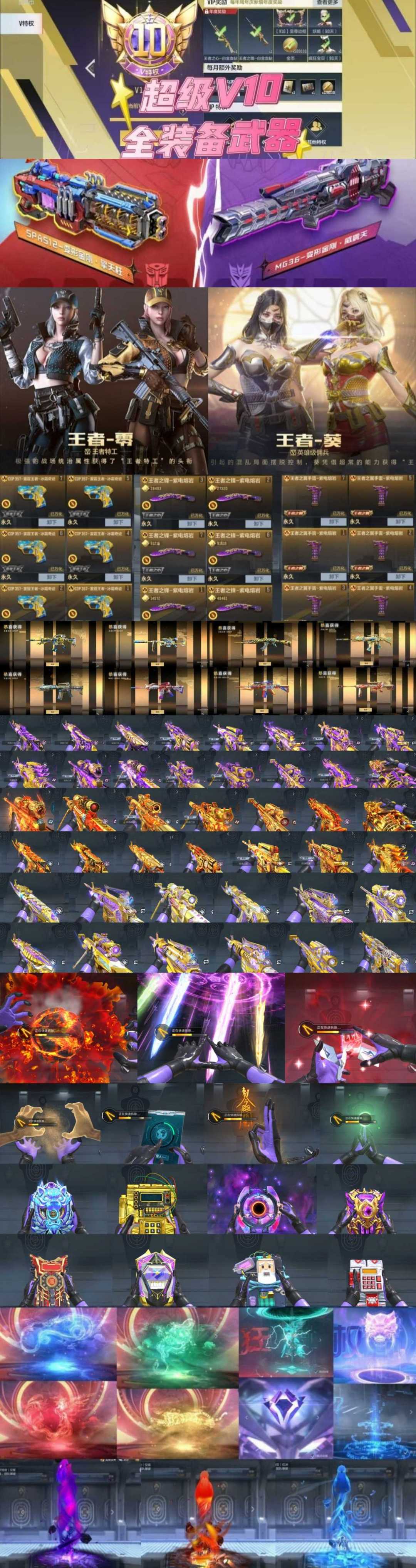 V10☀五期紫电+炫闪凤雏+夜影幻纱手套+奉先手环ノ七个拆弹动画+全王者+全三国ノ赛事皮肤ノ破空枪刃