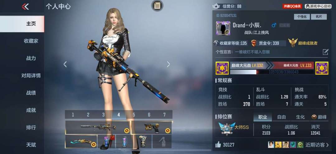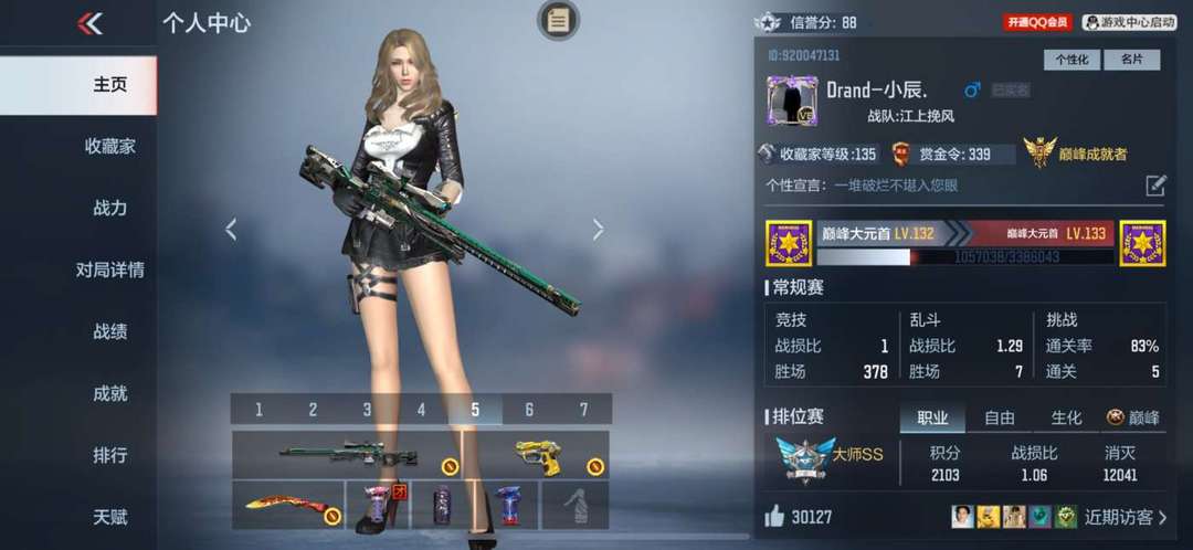 装备描述:穿越火线账号出租,132级巅峰大元首收藏家135级 带双传奇印记 三国系列武器一套仲达 幻神全都有 还有 cop雷霆王者 轻狙妙才 王者之兽等热门装备 租聘时长已到的话请您自觉下号谢谢!