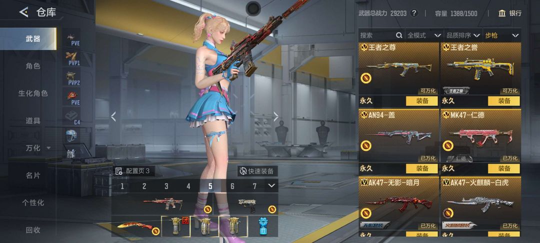 装备描述:狙击 步枪全都够用 配套的手枪也够 打内战打排位都可以 价格也合适 快来租吧