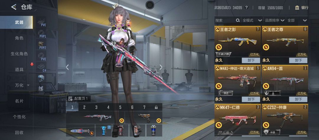 装备描述:m4仲达烽火连城皮肤,cop堕天神,MK47仁德,仲康,AN94盖,王影,王兽,帝皇侠套装。