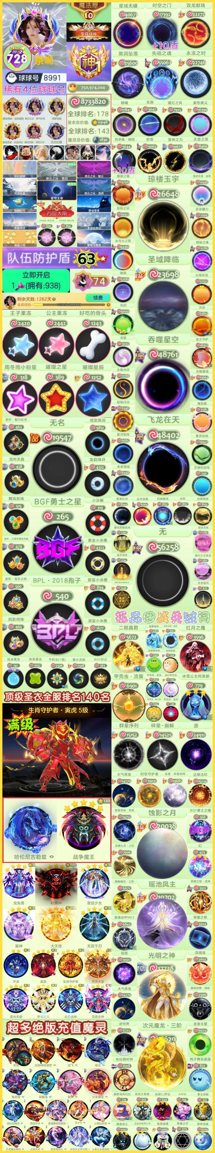 728秀❤️神/870万皮63盾❤️无光环无名/飞龙/BGF/BPL/满级阿芙娜/满级魔王/满级生肖