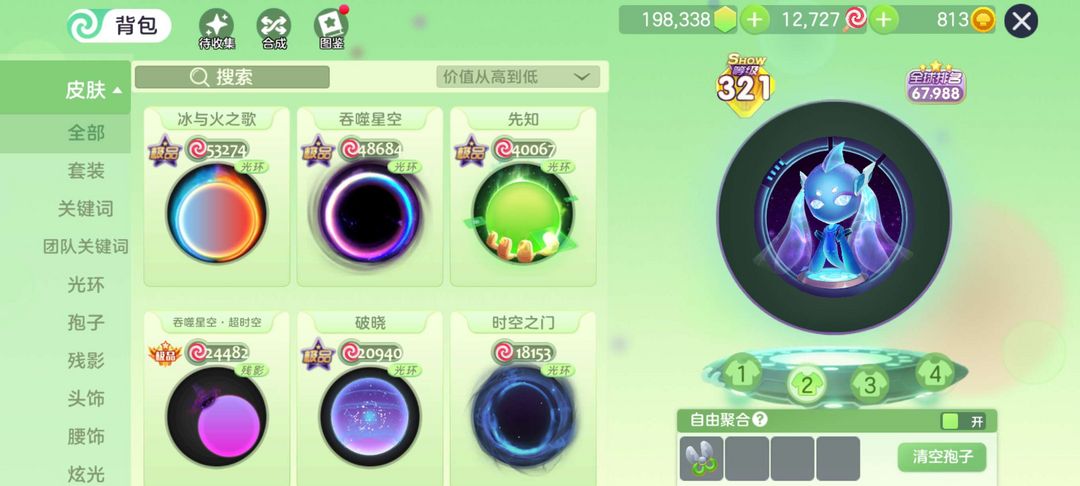 装备描述:水滴抹茶小飞机小骨头嘉年华520静谧空间冰火阿芙娜甲壳虫量子时空探索者飞剪神秘石像小火箭金箍棒千机伞小恶魔大陀螺恶心关键词越野龙库拉拉丘比特大白狂战之凯敬请期待诸多幻化关键词显小关键词无极王权破晓