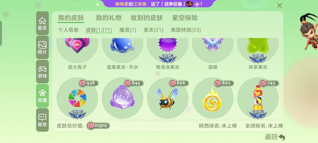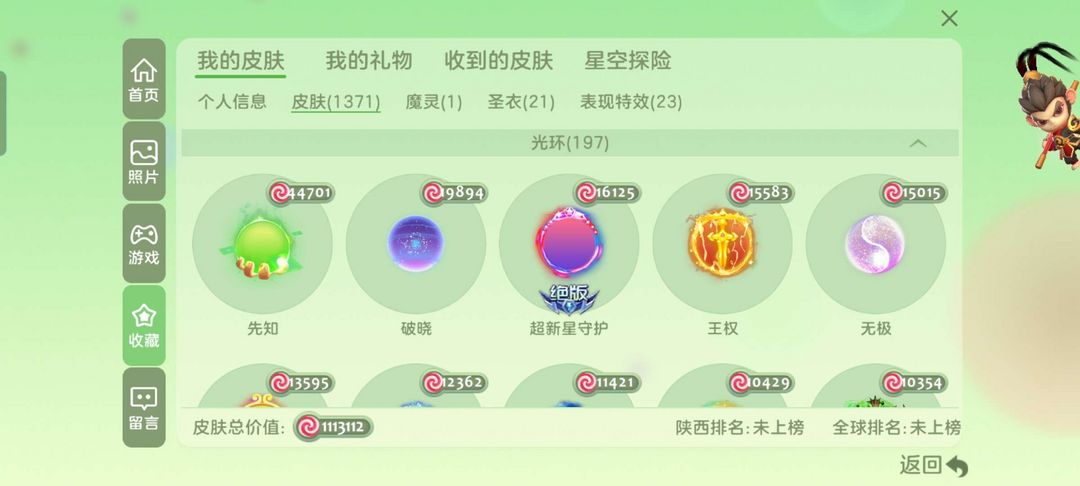 装备描述:狍子:冰红茶,bgy,抹茶,水滴, 光环:先知,无极,破晓等等 关键词:大白,幻化,甲壳虫等等 满级雅典娜,敬请期待等等