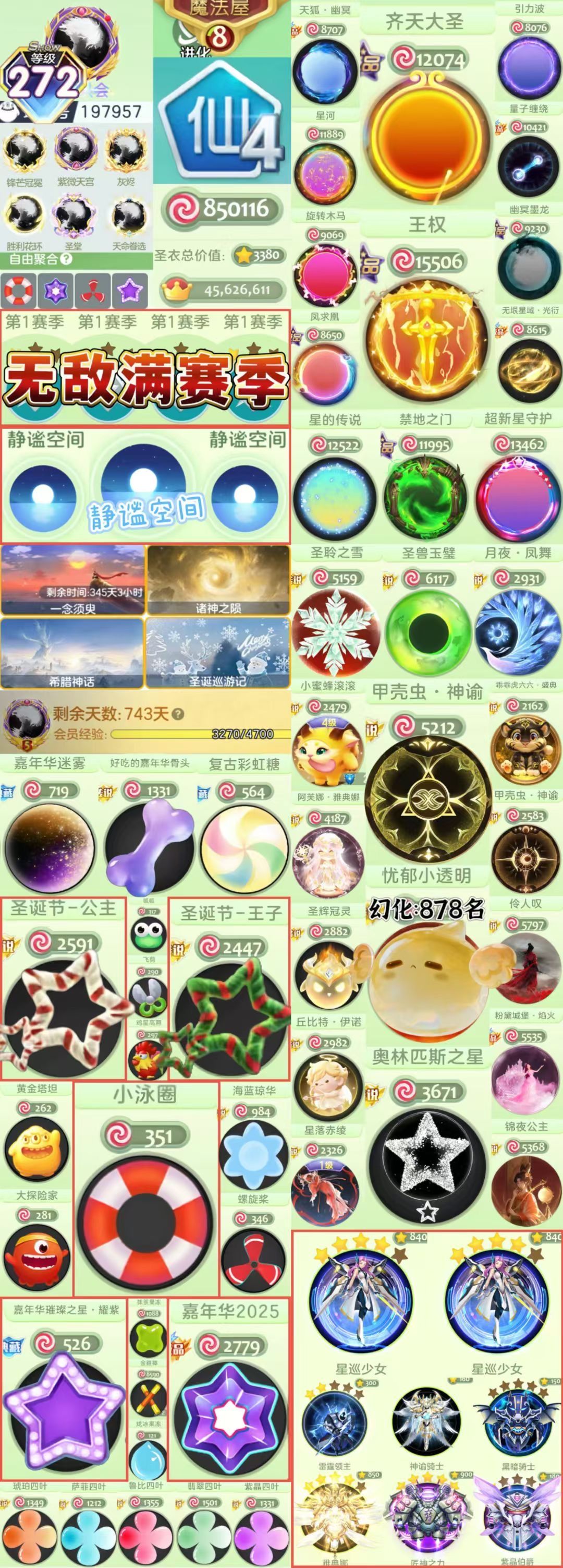 静谧空间*圣诞节王子公主*满赛季1.4万排名/高幻化神谕甲壳虫/主题年卡/嘉年华2025璀璨/奥林匹