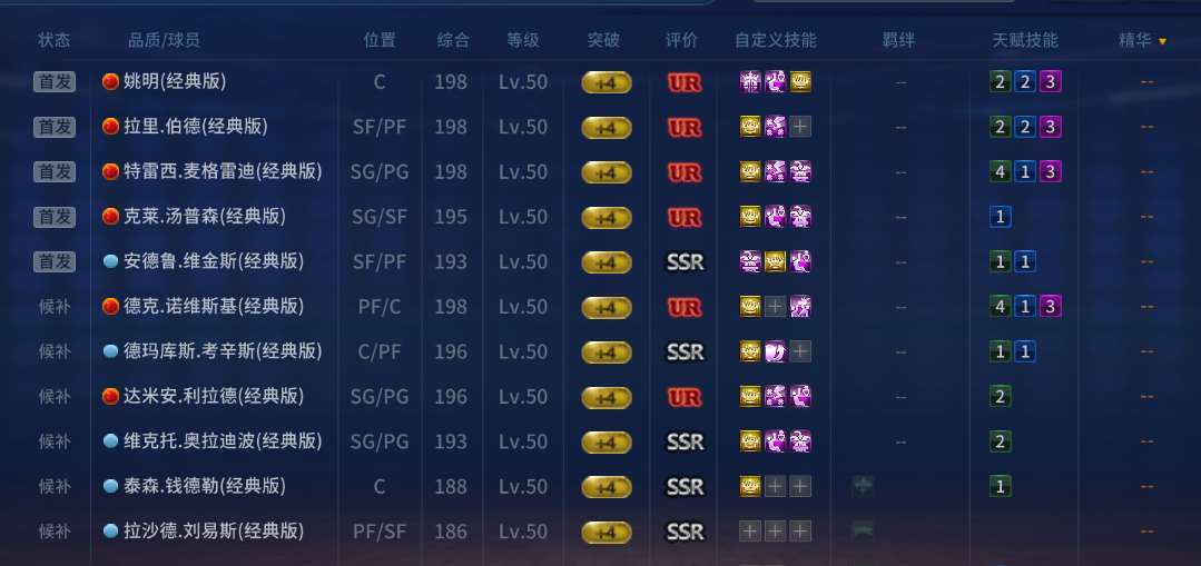 美航UR麦迪姚明伯德司机,UR汤普森利拉德,SSR考辛斯维金斯刘易斯,王超一套阵容
