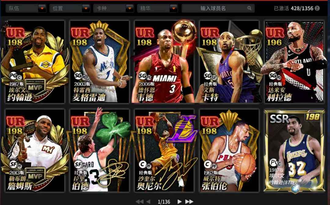 美航9UR伯德鲨鱼卡特詹姆斯经典科比乔丹威金