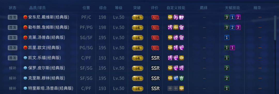 美航詹眉组合❤UR詹姆斯❤UR戴维斯❤UR欧文❤UR克莱SSR乐福SSR汤普森骑士套配菜 技能齐全