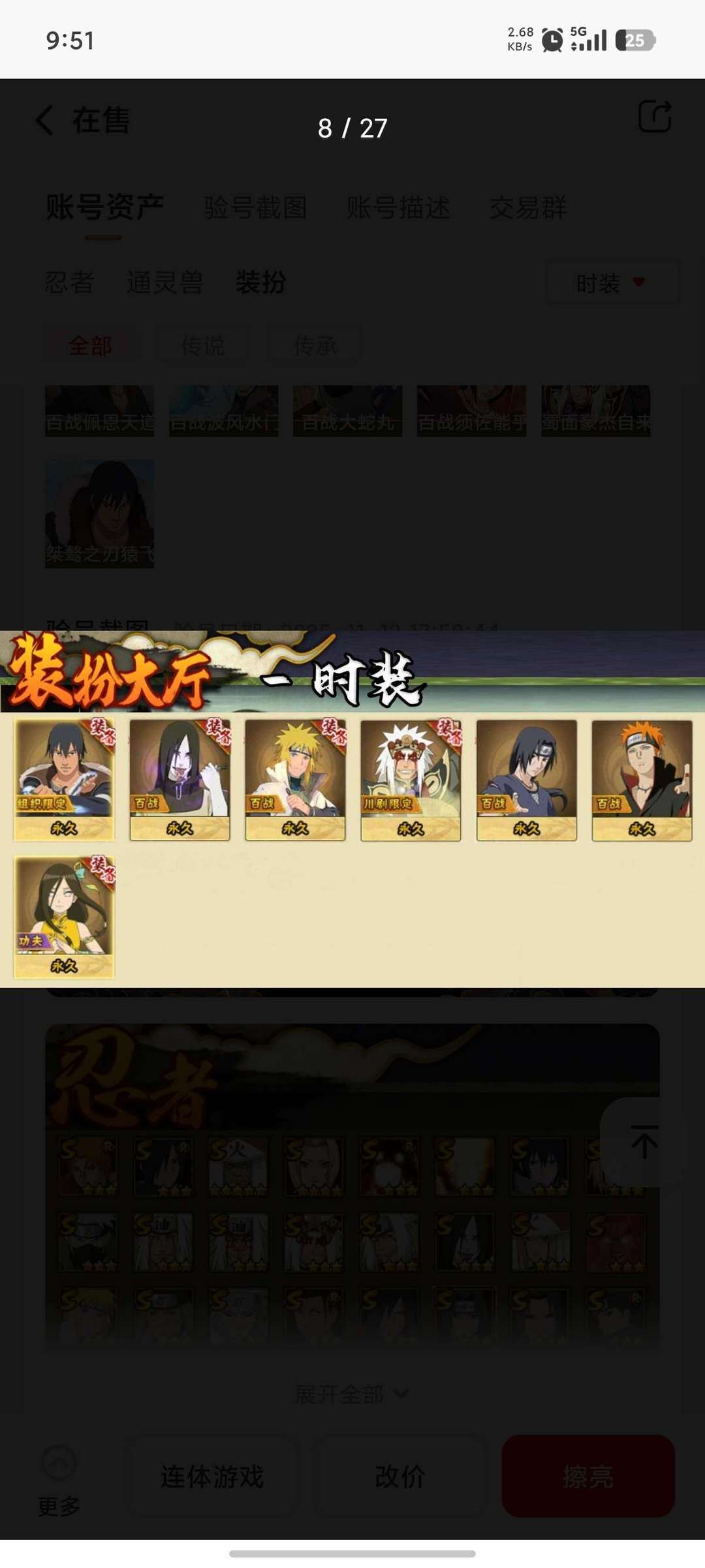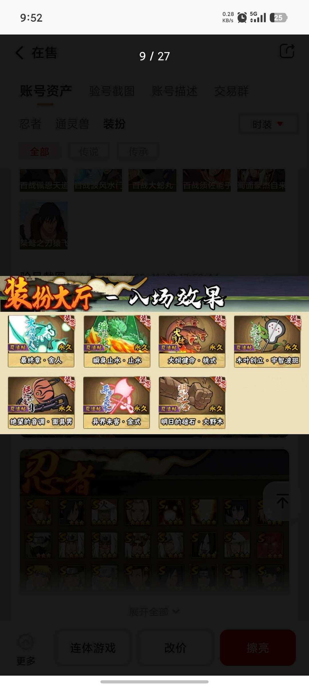 1862W战力,S忍36个A忍49个排名19通灵兽24个,7时装,上忍1阶,忍者星数693